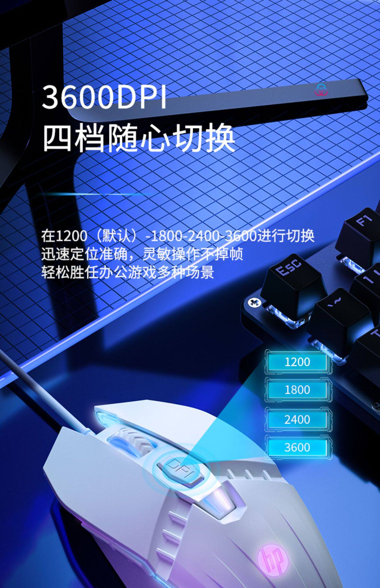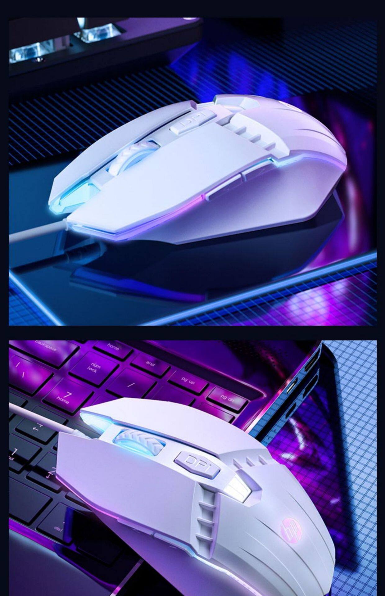 HP M1 Wired Mouse White – E-sports Gaming, Office, Competition, Mute Button, Special Edition