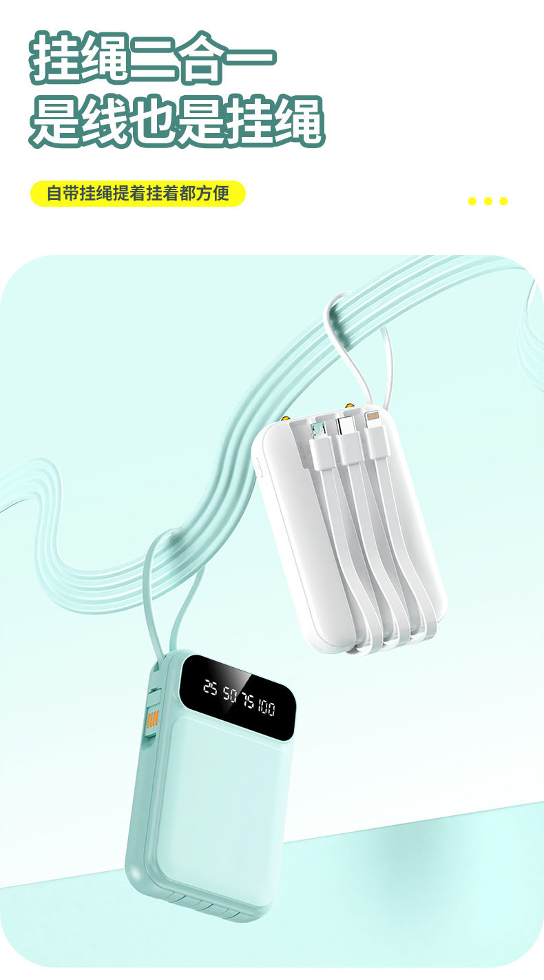 Mini Power Bank 20000mAh Portable with 3C Certification, Includes Cable, Custom Design